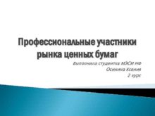 Профессиональные участники рынка ценных бумаг Выполнила студентка МЭСИ