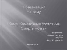 Презентация На тему Коматозные состояния Смерть мозга Подготовила
