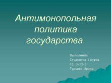 Антимонопольная политика государства Выполнила Студентка 1 курса Гр