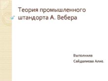 Теория промышленного штандорта А Вебера Выполнила Сайдалиева Алие