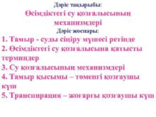 Дәріс тақырыбы Өсімдіктегі су қозғалысының механизмдері Дәріс жоспары