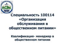 Специальность 100114 Организация обслуживания в общественном питании Квалификация-