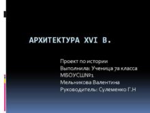 АРХИТЕКТУРА ХVI В Проект по истории Выполнила Ученица
