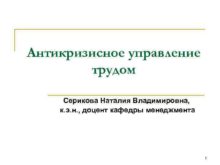 Антикризисное управление трудом Серикова Наталия Владимировна к э