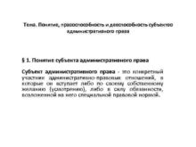 Тема Понятие правоспособность и дееспособность субъектов административного права