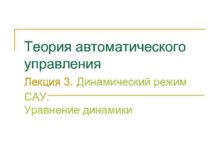 Теория автоматического управления Лекция 3 Динамический режим САУ