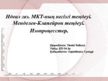 Идеал газ МКТ-ның негізгі теңдеуі Менделев-Клапейрон теңдеуі Изопроцесстер