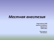 Местная анестезия Подготовлено 303 группой лечебного факультета ИГМУ