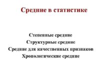 Средние в статистике Степенные средние Структурные средние Средние