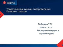 Теоретические основы товароведения Качество товаров Лебедева Т П