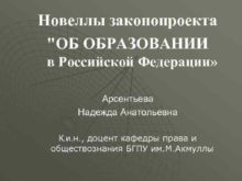 Новеллы законопроекта ОБ ОБРАЗОВАНИИ в Российской Федерации Арсентьева