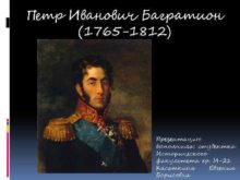 Петр Иванович Багратион 1765 -1812 Презентацию выполнила студентка