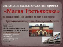 Социальный исследовательский проект Малая Третьяковка посвященный 160 -летию