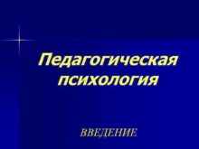 Педагогическая психология ВВЕДЕНИЕ Педагогическая психология как наука