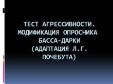 ТЕСТ АГРЕССИВНОСТИ МОДИФИКАЦИЯ ОПРОСНИКА БАССА-ДАРКИ АДАПТАЦИЯ Л Г