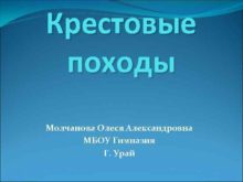 Крестовые походы Молчанова Олеся Александровна МБОУ Гимназия Г