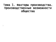 Тема 1 Факторы производства Производственные возможности общества