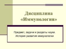 Дисциплина Иммунология Предмет задачи и разделы науки История