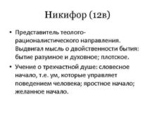 Никифор 12 в Представитель теологорационалистического направления Выдвигал