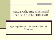 РАССТРОЙСТВА ВЛЕЧЕНИЙ И ЗЛОУПОТРЕБЛЕНИЕ ПАВ Курс наркологии ГОУ