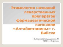 Этимология названий лекарственных препаратов фармацевтической компании Алтайвитамины г
