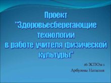 Проект Здоровьесберегающие технологии в работе учителя физической культуры