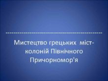 ———————— Мистецтво грецьких містколоній Північного Причорномор я Реконструкція