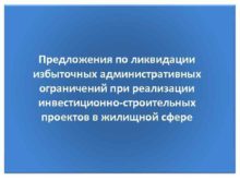 Предложения по ликвидации избыточных административных ограничений при реализации