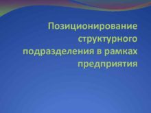Позиционирование структурного подразделения в рамках предприятия Позиционирование