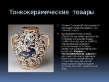 Тонкокерамические товары Термин керамика происходит от греческого слова