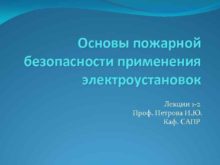 Основы пожарной безопасности применения электроустановок Лекции 1 -2