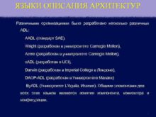 ЯЗЫКИ ОПИСАНИЯ АРХИТЕКТУР Различными организациями было разработано несколько