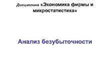 Экономика фирмы и микростатистика Дисциплина Анализ безубыточности