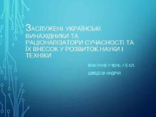 ЗАСЛУЖЕНІ УКРАЇНСЬКІ ВИНАХІДНИКИ ТА РАЦІОНАЛІЗАТОРИ СУЧАСНОСТІ ТА ЇХ