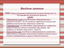 Вводное занятие ТЕМА Предупреждение травматизма на уроке Инструктаж