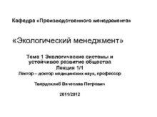Кафедра Производственного менеджмента Экологический менеджмент Тема 1 Экологические