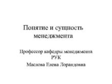 Понятие и сущность менеджмента Профессор кафедры менеджмента РУК