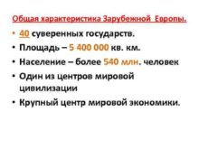 Общая характеристика Зарубежной Европы 40 суверенных государств Площадь