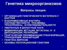 Генетика микроорганизмов Вопросы лекции ОРГАНИЗАЦИЯ ГЕНЕТИЧЕСКОГО МАТЕРИАЛА