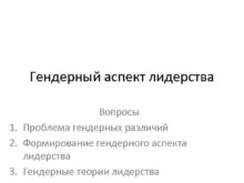 Гендерный аспект лидерства Вопросы 1 Проблема гендерных различий