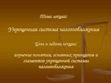 Тема лекции Упрощенная система налогообложения Цель и задачи