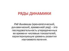 РЯДЫ ДИНАМИКИ Ряд динамики хронологический динамический временной ряд