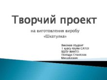 Творчий проект на виготовлення виробу Шкатулка Виконав студент