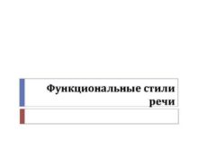 Функциональные стили речи Функциональные разновидности языка Разговорная