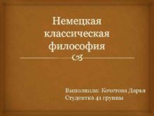 Немецкая классическая философия Выполнила Кочетова Дарья Студентка 41