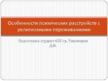 Особенности психических расстройств с религиозными переживаниями Подготовил студент