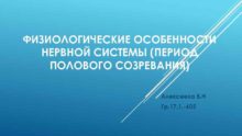 ФИЗИОЛОГИЧЕСКИЕ ОСОБЕННОСТИ НЕРВНОЙ СИСТЕМЫ ПЕРИОД ПОЛОВОГО СОЗРЕВАНИЯ Алексеева