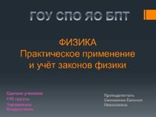 ФИЗИКА Практическое применение и учёт законов физики Сделано
