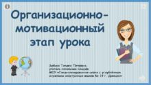 Организационномотивационный этап урока Зыбина Татьяна Петровна учитель начальных