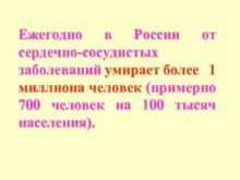 Ежегодно в России от сердечно-сосудистых заболеваний умирает более